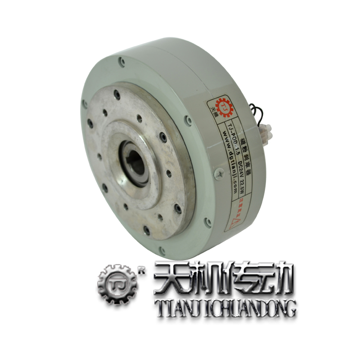 东莞天机传动厂家生产的单轴磁粉制动器使用的DC24V直流电压,从而单轴磁粉制动器又称DC24V磁粉制动器,对应的型号为TJ-POD也是一款轴连接型、止口支撑型磁粉制动器,安装操作简单,维护保养简单。